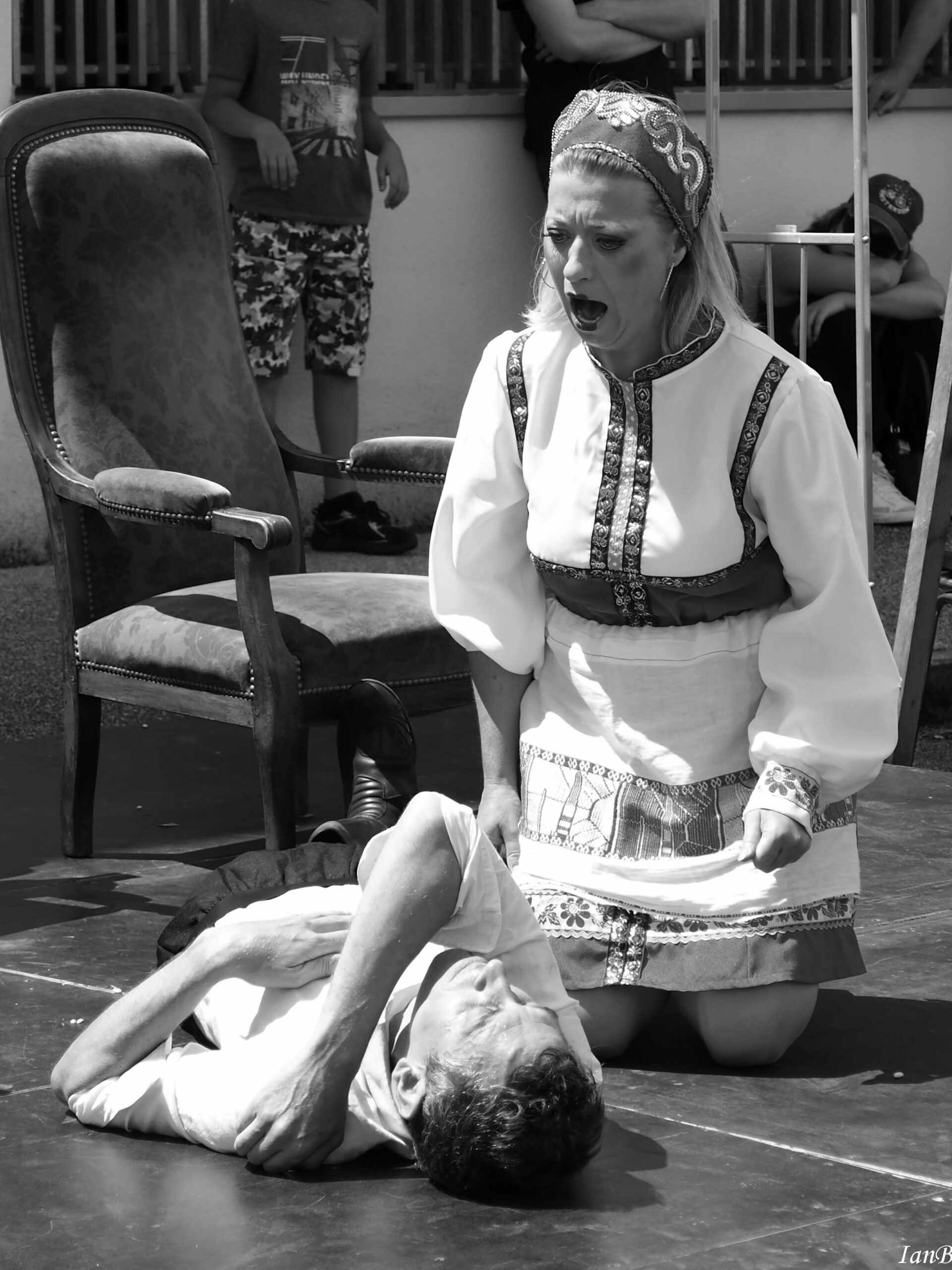 Notre troupe propose « Une demande en mariage » de Tchekhov, une comédie pétillante où l’amour se mêle aux querelles absurdes du quotidien. Avec énergie et humour, nous donnons vie à cette farce intemporelle qui fait rire autant qu’elle fait réfléchir. En 2021, notre interprétation a reçu le Coup de cœur du Jury au Festival de Clisson, une reconnaissance qui a renforcé notre envie de partager ce spectacle avec le plus grand nombre. Depuis, nous jouons la pièce régulièrement, que ce soit en salle ou en plein air, selon le désir des organisateurs. Cette souplesse nous permet d’aller à la rencontre de tous les publics, dans des contextes variés et parfois inattendus. À chaque représentation, l’enthousiasme et la complicité entre les comédiens séduisent et embarquent le spectateur. Une invitation à rire ensemble des petites folies humaines!